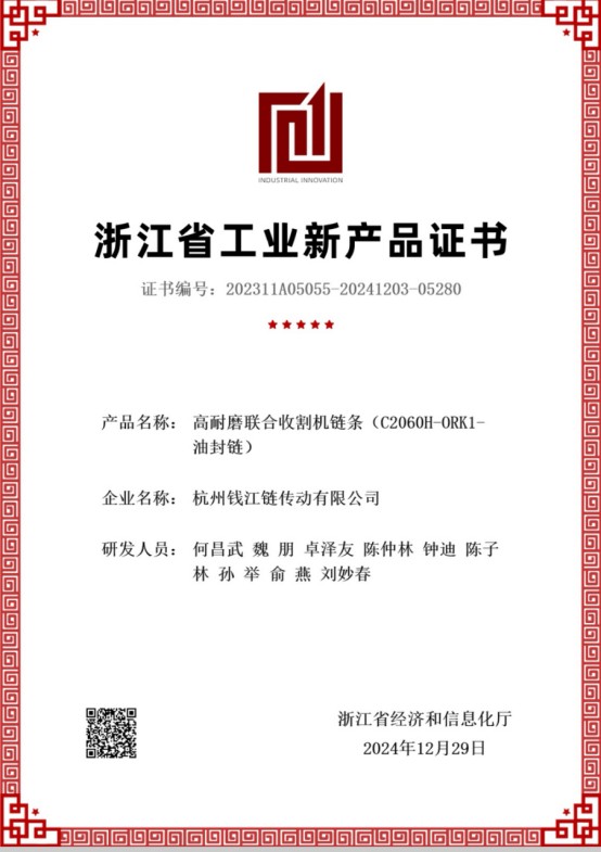 In 1991 werkte het bedrijf samen met het Chain Drive Research Institute van de Jilin Universiteit om kettingen met O-ringen en X-ringen te ontwikkelen en te produceren, die in 2001 de "Special Award for Excellent New Products in China's Chain Industry" ontvingen. Het bedrijf heeft een langdurige accumulatie op het technische gebied van oliegesmeerde kettingen.
