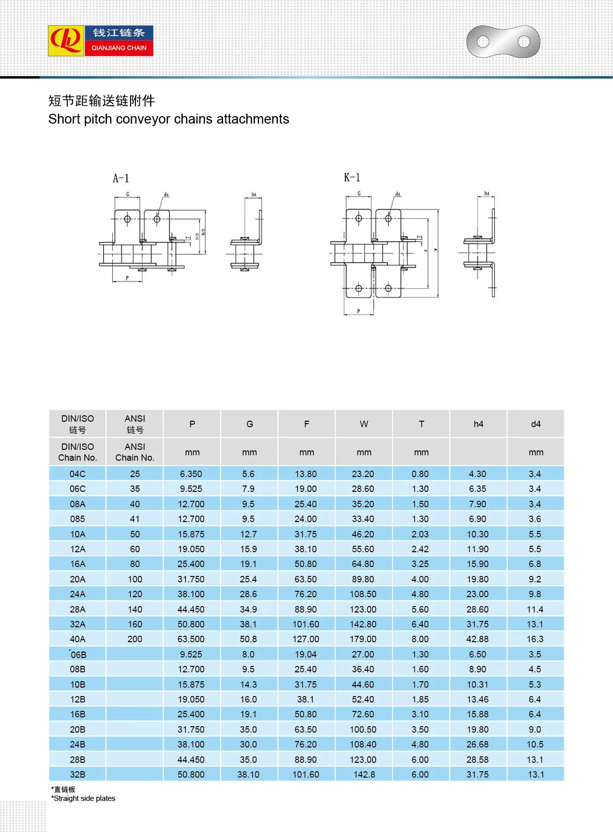 Met slijtvastheid en consistente prestaties onder zware belasting verlengen onze kettingen niet alleen de levensduur van de apparatuur, maar verlagen ze ook de operationele kosten. Kies korte transportkettingen met hulpstukken voor ongeëvenaarde kwaliteit en aanpassingsvermogen, waardoor uw bedrijf naadloos vooruit kan gaan!