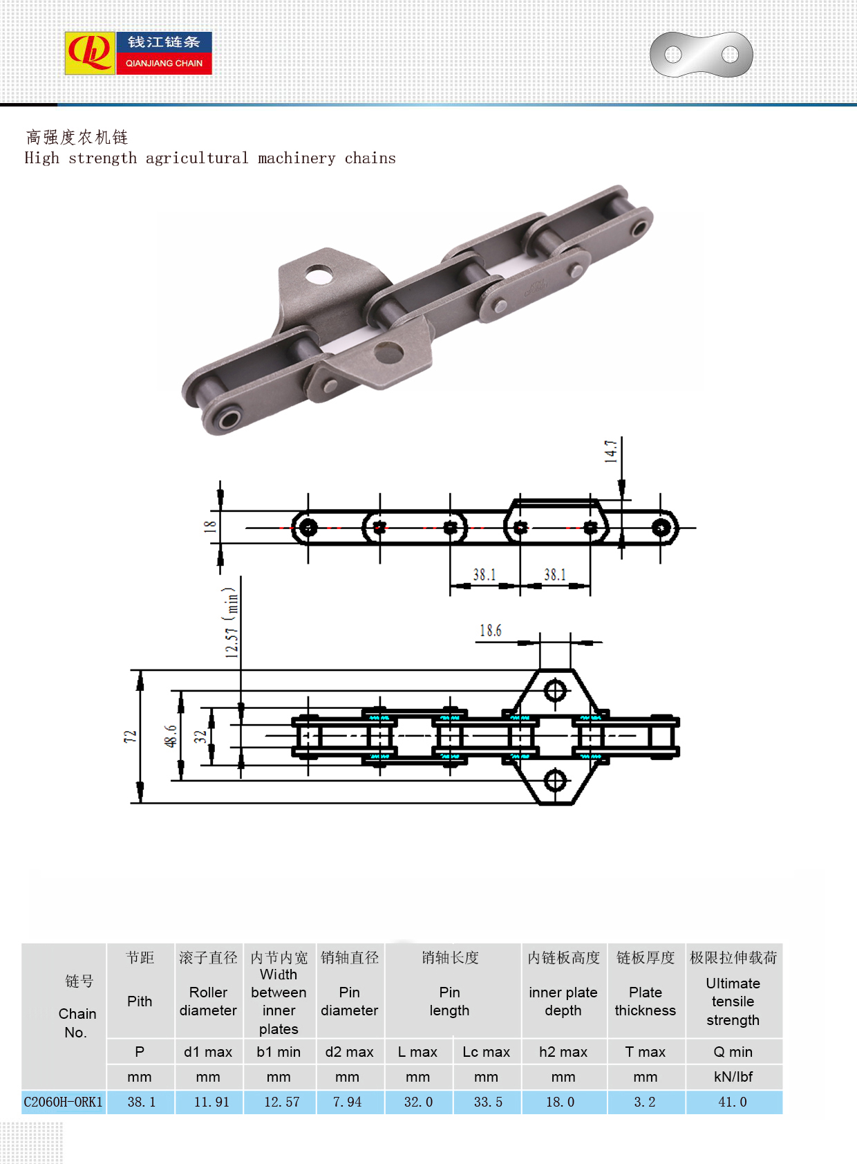 Landbouwmachinekettingen met hoge sterkte hebben slijtvastheid, sterkte en levensduur en zijn geschikt voor verschillende complexe werkomstandigheden. Er worden hoogwaardige gelegeerde staalmaterialen gebruikt en de treksterkte en levensduur van de ketting worden verbeterd door warmtebehandelingsprocessen (zoals carboneren, temperen en blussen). Het kettingcontactoppervlak is speciaal gehard, met een glad oppervlak en goede slijtvastheid, geschikt voor hoogfrequente werkzaamheden. Precisieverwerkingstechnologie zorgt ervoor dat de kettingschakels nauw op elkaar aansluiten, soepel lopen en geluid en trillingen verminderen. Een verscheidenheid aan steeklengtes, sterkten en vormen (zoals rollenkettingen, accessoirekettingen, gebogen plaatkettingen, enz.) kunnen worden aangepast aan de ondersteunende behoeften van verschillende landbouwmachines en -apparatuur. Gebruikt in het transmissiemechanisme voor het transporteren, snijden en dorsen van tarwe, rijst, maïsoogstmachines, enz. Het aandrijven van de zaaischijf en kunstmestas vereist dat de ketting nauwkeurig en duurzaam loopt. Toegepast op landbouwtransportbanden, materiaalliften, enz., om hoogfrequente transporttaken uit te voeren.