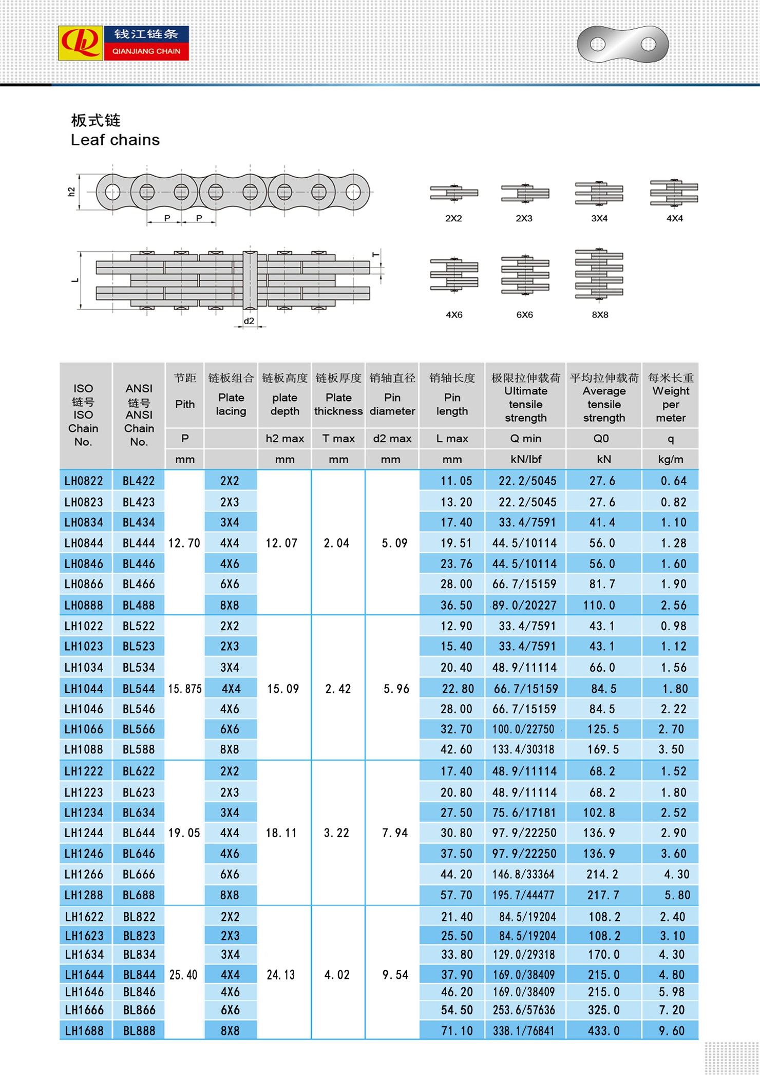 De LH (BL-serie) bladkettingen worden vaak gebruikt in vorkheftrucks, materiaaltransportsystemen en hefapparatuur en zijn ideaal waar sterkte en betrouwbaarheid cruciaal zijn. Hun hoge vermoeiingssterkte en weerstand tegen rek maken ze geschikt voor repetitief tillen en zware taken.