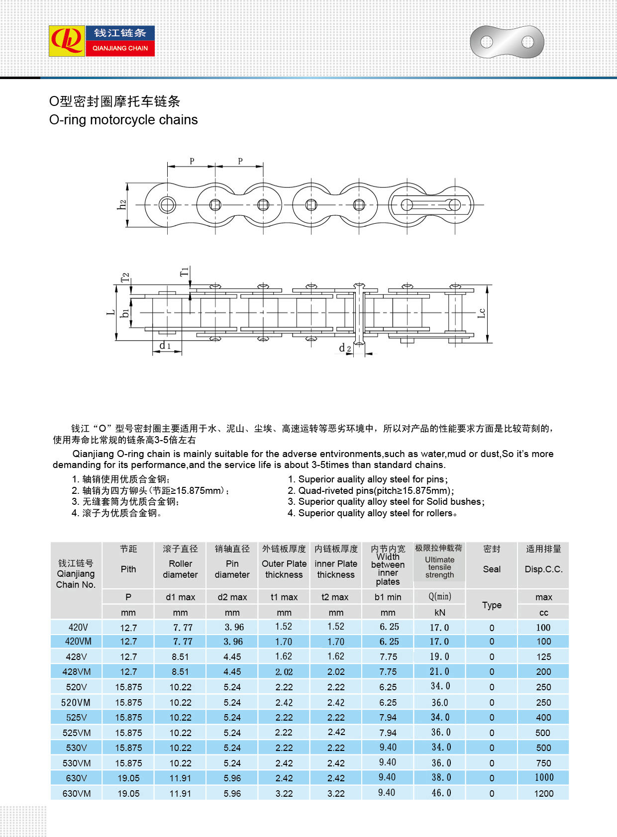 Upgrade uw rit met motorkettingen met O-ringen – de ultieme keuze voor duurzaamheid, efficiëntie en stijl. Deze kettingen zijn ontworpen met geavanceerde afdichtingstechnologie en zijn voorzien van O-ringen die de smering vasthouden en vuil en vuil buiten houden, waardoor een langere levensduur wordt gegarandeerd in vergelijking met standaardkettingen. Hun strakke, moderne uiterlijk is verkrijgbaar in verschillende afwerkingen, van gepolijste metaaltinten tot matzwart, en biedt aanpassingsmogelijkheden die passen bij de esthetiek van uw fiets.