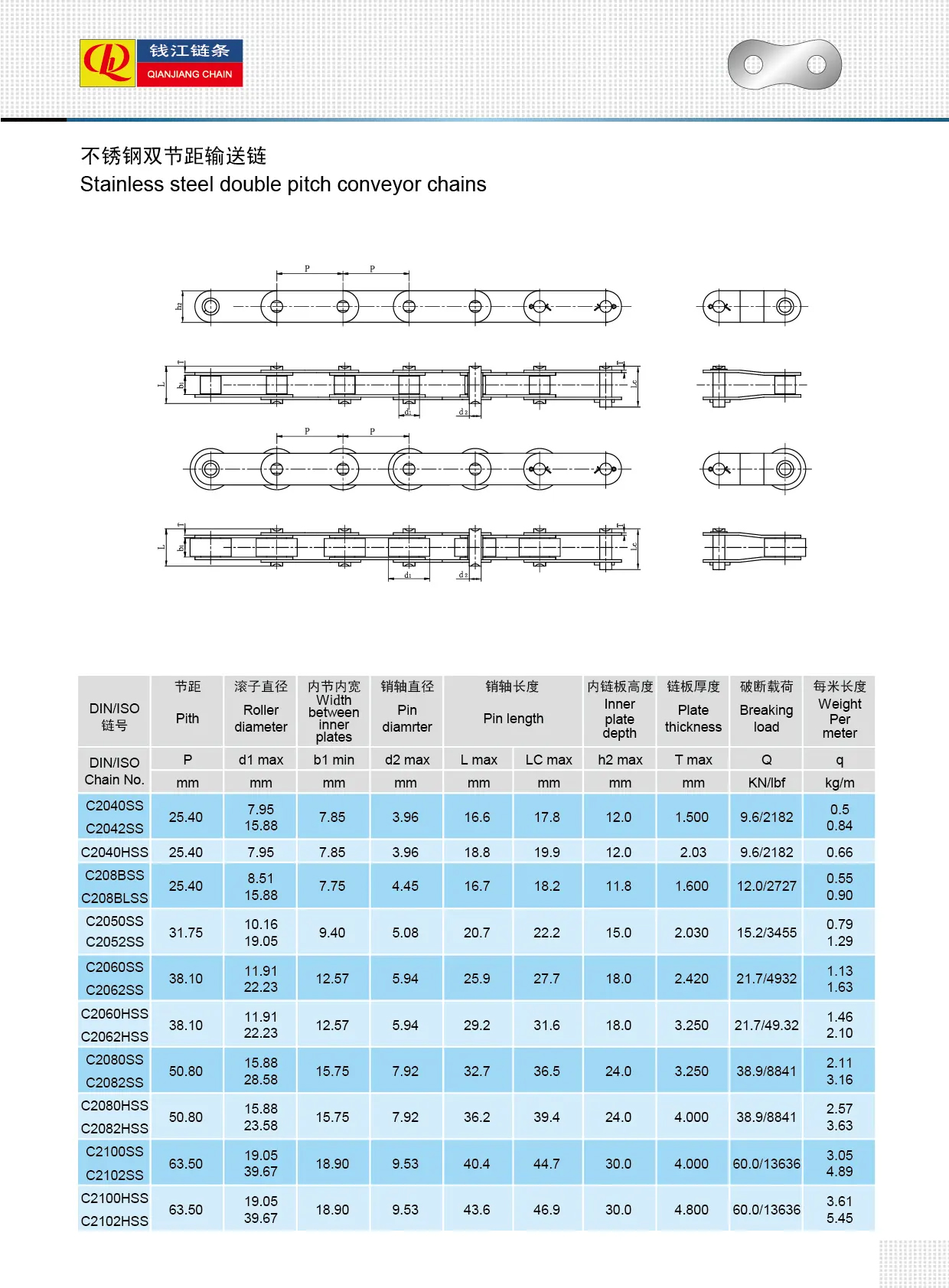 De roestvrijstalen transportkettingen met dubbele steek zijn ontworpen met het oog op sterkte en een lange levensduur. Ze zijn gemaakt van hoogwaardig roestvrij staal, waardoor ze bestand zijn tegen corrosie, slijtage en omgevingsomstandigheden. Hun robuuste constructie zorgt voor betrouwbare prestaties, zelfs onder zware belasting, waardoor de onderhoudskosten en uitvaltijd aanzienlijk worden verminderd.