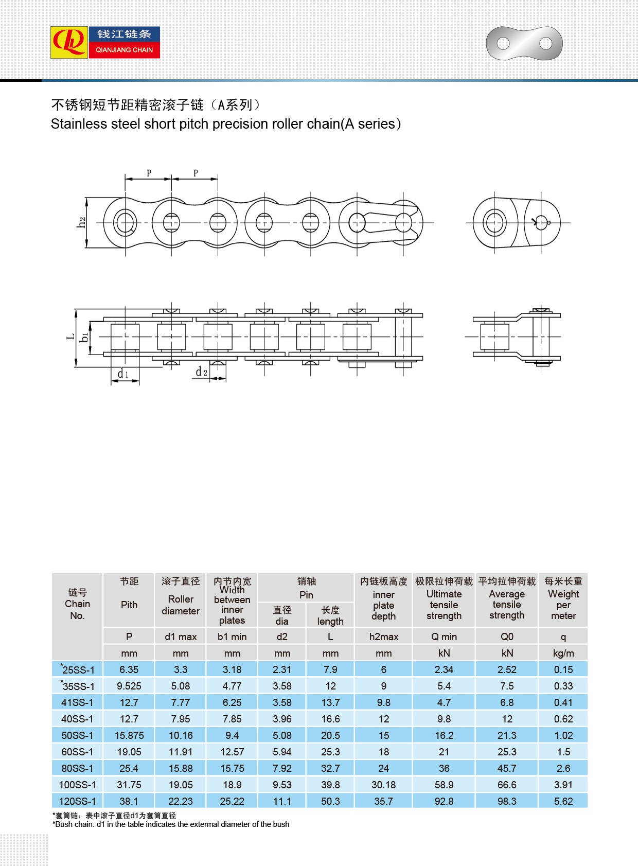 Roestvrijstalen precisierollenkettingen met korte steek